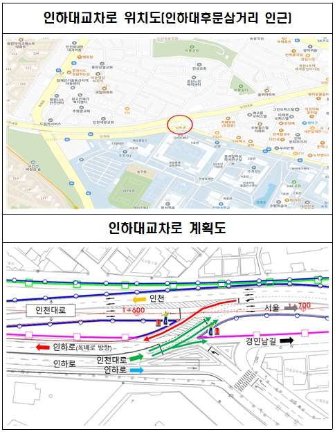 | ▲ 인하대교차로 위치도 및 계획도 |