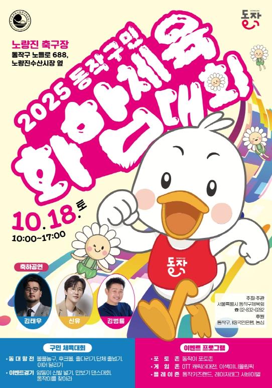 구민 건강 증진과 주민 간 소통·화합을 위해 마련된 이번 행사는 동작구체육회가 주최·주관하며 5천여 명의 선수단과 응원단, 주민이 참여한다.