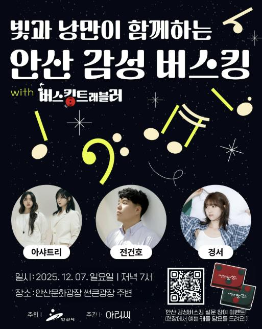 [뉴스앤톡] 안산시는 오는 7일 고잔동 안산문화광장 썬큰광장에서 ‘빛과 낭만이 함께하는 안산 감성 버스킹’ 공연을 개최한다고 3일 밝혔다.