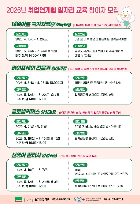 | ▲ 2026년 동작구 취업연계형 일자리 교육 4월 참여자 모집 홍보물 |