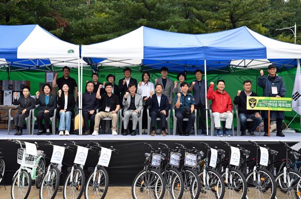 | ▲ 이민근 안산시장(앞줄 왼쪽 여섯번째)이 제13회 상록구 자율방범대 한마음 체육대회에서 참석자들과 함께 기념촬영을 하고 있다. |