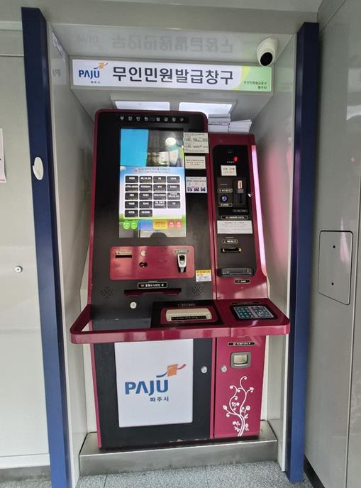 한편, 파주시는 현재 40개소에 총 45대의 무인민원발급기를 설치 운영 중이며, 이 중 27개소는 연중무휴 24시간 이용 가능하다. 무인민원발급기의 상세 위치 및 운영시간은 파주시청 누리집과 정부24 누리집에서 확인할 수 있다.