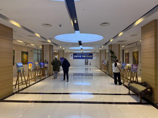 | ▲ 치매가족 작품전시회 ‘힐링에 아트를 더하다’가 열리는 아주대학교 병원 별관 로비. |