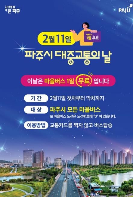 | ▲ 파주시, 대중교통의 날(2월 11일) 마을버스 무료 운행 |