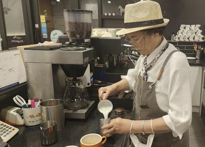 | ▲ 실버 카페에서 일하고 있는 실버 바리스타 |