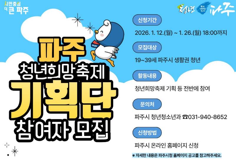 | ▲ 2026년 파주 청년희망축제 기획단 참여자 모집 |
