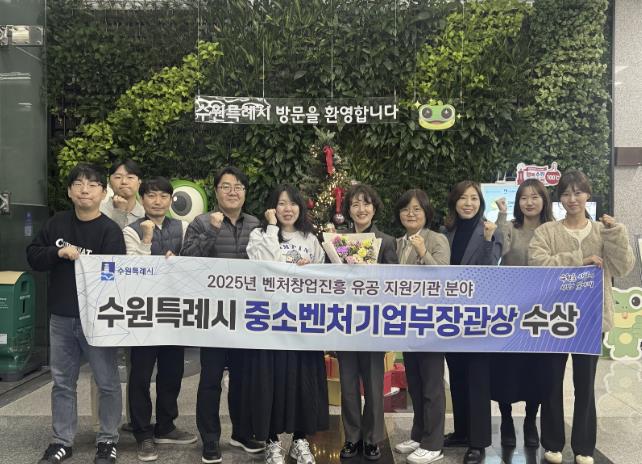 [뉴스앤톡] 수원특례시가 중소벤처기업부가 주관한 벤처창업진흥 유공 포상에서 ‘우수정책입안단체’로 선정돼 중기부 장관상을 받았다. 시상식은 27일 경기창조경제혁신센터에서 열린 ‘2025 경기 딥테크 스타트업 FLEX’ 행사 중 열렸다.