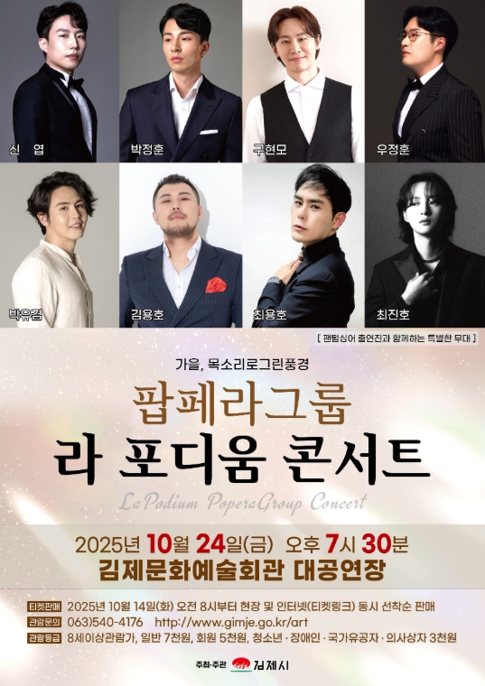 [뉴스앤톡] 깊어 가는 가을, 특별한 음악의 향연 팝페라 그룹'라 포디움 콘서트'가 오는 24일 오후 7시 30분 김제문화예술회관 대공연장에서 펼쳐진다.