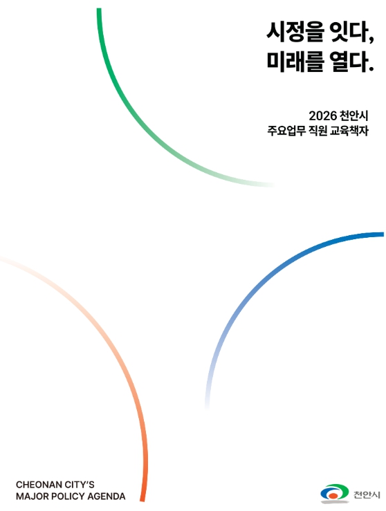 [뉴스앤톡] 천안시는 2026년 시정 핵심 방향과 주요 사업을 담은 실무 교육용 안내서 ‘시정을 잇다, 미래를 열다 : 2026 주요업무 직원 교육 책자’를 발간했다고 3일 밝혔다.