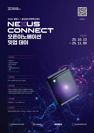 [뉴스앤톡] (재)충남창조경제혁신센터와 세메스(주)는 반도체·디스플레이 장비 혁신을 이끌 유망 스타트업을 발굴·육성하기 위해 ‘2025 세메스 × 충남창조경제혁신센터 Nexus Connect 오픈이노베이션 밋업 데이’ 참여 기업을 11월 9일까지 모집한다.