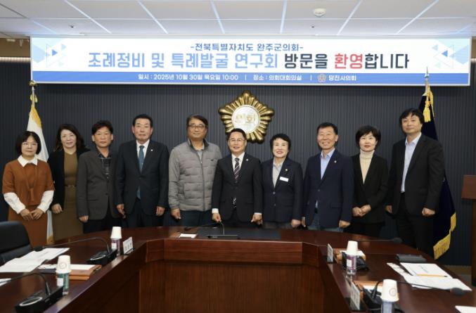 [뉴스앤톡] 당진시의회는 10월 30일 완주군의회 의원 연구단체인‘조례 정비 및 특례 발굴 연구회’와 간담회를 갖고, 입법영향평가 제도 운영 경험과 노하우를 공유하는 시간을 가졌다.