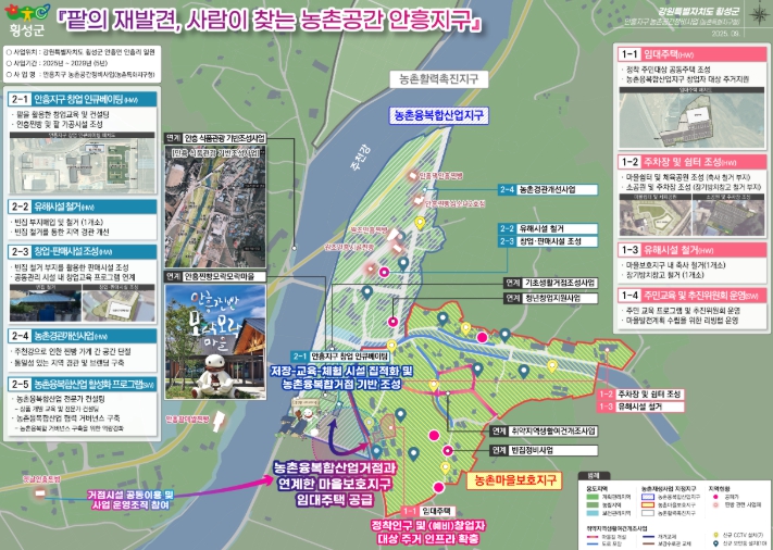 횡성군은 전국 최초 2년 연속 농촌협약 공모에 선정되어 814억원의 사업비를 확보한 것에 이어 금회 추가로 농촌공간정비사업 공모에 선정되어, 농촌공간재구조화 선도 시군으로서의 입지를 공고히 했다.
