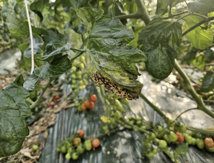 | ▲ 결로로 인한 토마토 곰팡이병(진균류) 감염 모습 |