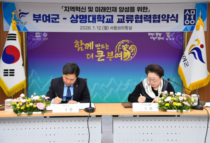 [뉴스앤톡] 부여군은 지역혁신과 미래 신산업·문화콘텐츠 산업 분야의 인재를 양성하고, 창업 및 산업 활성화를 지원함으로써 지역경제 발전과 지속 가능한 협력체계를 구축하기 위하여 상명대학교와 업무협약(MOU)을 체결했다고 14일 밝혔다.