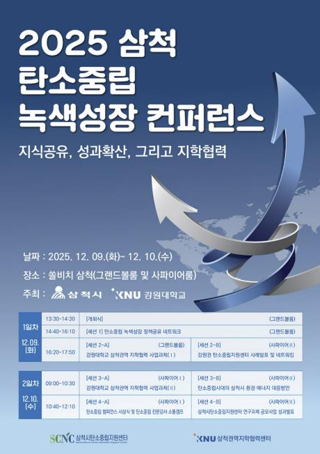 [뉴스앤톡] 삼척시와 강원대학교가 공동 주최하는 ‘2025 삼척 탄소중립 녹색성장 컨퍼런스’가 오는 12월 9일부터 10일까지 이틀간 쏠비치 삼척에서 개최된다.