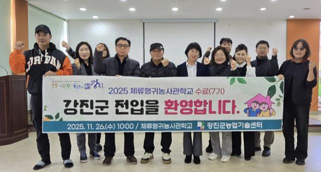[뉴스앤톡] 강진군은 지난달 26일 체류형귀농사관학교 7기 교육생 수료식을 열고, 9개월간의 체류·교육 과정을 성공적으로 마친 교육생들이 강진에서의 새로운 정착 단계에 들어섰다고 4일 밝혔다.