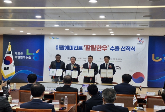 [뉴스앤톡] 대한민국 축산물 브랜드경진대회에서 2019년, 2021년, 2023년 대통령상을 수상한 강원특별자치도 통합브랜드 ‘강원한우’가 10월 30일 서울 농협중앙회 본관에서 ‘강원한우 아랍에미리트(UAE) 수출 선적식’을 개최했다.
