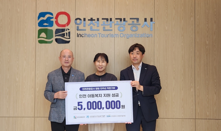 [뉴스앤톡] 인천관광공사가 창립 10주년을 맞아 인천지역 아동복지 지원 성금 500만원을 인천아동복지협회에 전달했다.