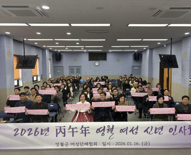 [뉴스앤톡] 영월군여성단체협의회(회장 김미자)는 1월 16일, 여성회관 2층 대강당에서 여성계 인사 130여 명이 참석한 가운데 ‘2026년 영월 여성 신년인사회’를 개최했다.