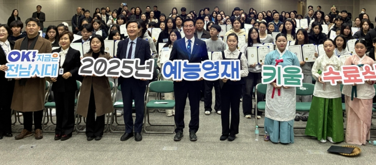 [뉴스앤톡] 전라남도는 도청 왕인실에서 2025년 예능영재 키움 수료식을 지난 22일 열어 1년간의 교육과정을 성실히 이수한 예능영재 학생들을 격려했다.
