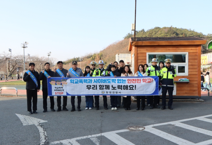 함평경찰은 함평초등학교 정문 앞에서 함평초등학교장 및 교직원, 녹색어머니회 등 25명과 함께 등교하는 학생들을 대상으로 학교 폭력 예방 캠페인을 진행하며 교육물품을 배부했다.