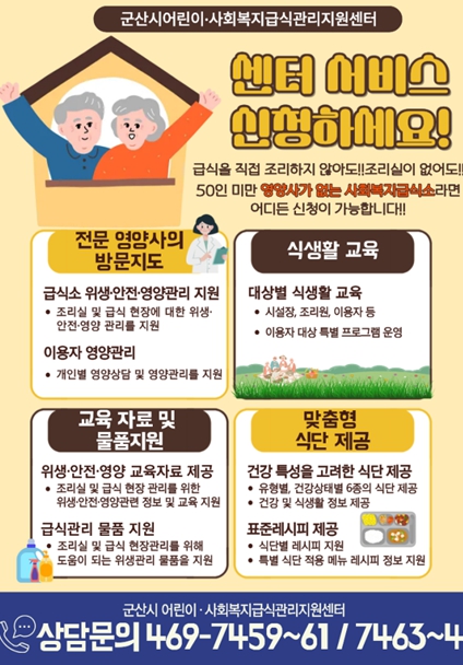 문의는 군산시 어린이·사회복지급식관리지원센터로 하면 된다.