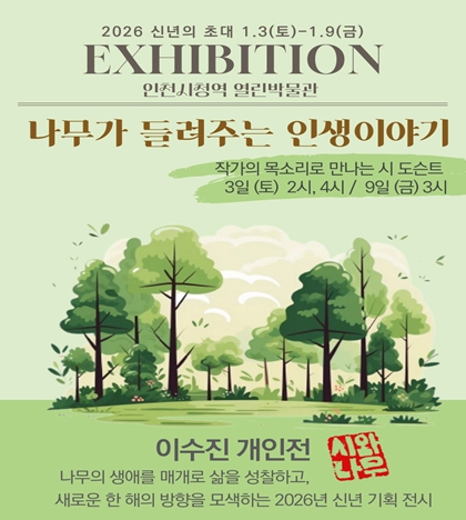 [뉴스앤톡] 인천광역시 시립박물관은 1월 3일부터 9일까지 인천지하철 1호선 인천시청역 내 ‘열린박물관’에서 대관전시 ‘나무가 들려주는 인생 이야기’개인작가 전시를 개최한다고 밝혔다.
