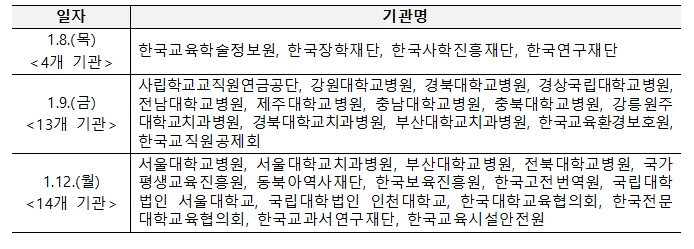 | ▲ 업무보고 일정 및 기관 |