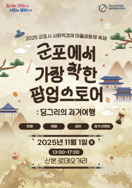 ‘군포에서 가장 착한 팝업스토어’라는 주제로 열리는 이번 행사는 시민들에게 사회적경제와 마을공동체의 가치를 알리고, 참여의 기회를 제공하고자 마련됐다.