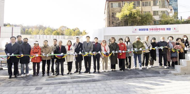 | ▲ 이태원1동 자투리땅 주차장 준공식 색줄 자르기(테이프 커팅) |