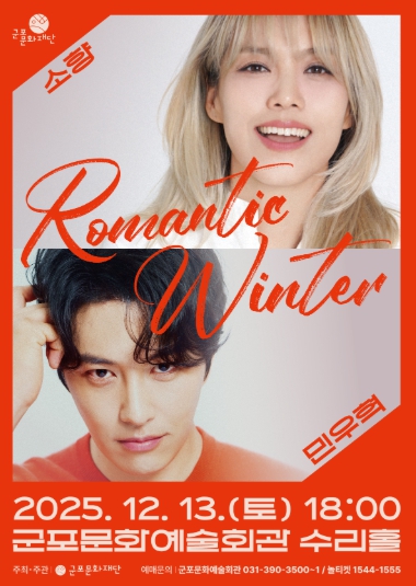[뉴스앤톡] 군포문화재단은 오는 12월 13일 오후 6시, 군포문화예술회관 수리홀에서 연말 기획공연 “소향×민우혁 콘서트 'Romantic Winter'”를 개최한다.