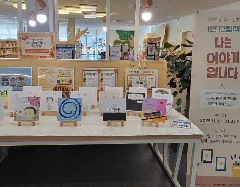 지난 8월부터 11월까지 진행된 인문창작 프로그램의 결과물을 전시한다. 참여자들이 직접 만든 그림책을 만날 수 있다. 문화체육관광부와 한국문화예술위원회가 후원한 2025년 도서관 공모 사업으로, 시민이 자신의 삶을 글과 그림으로 표현해 그림책을 완성하는 인문창작 프로그램이다.