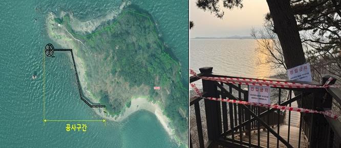 | ▲ 구봉도 낙조전망대 보강공사 위치와 현장사진 |