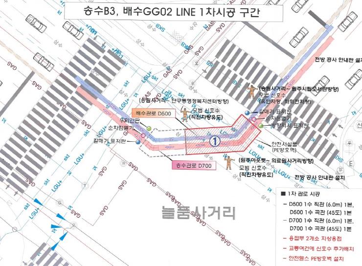 [뉴스앤톡] 원주시상하수도사업소는 태장배수지 설치사업의 일환으로 진행되는 늘품사거리 교차로 구간 송배수관로 설치공사를 야간에 실시한다.
