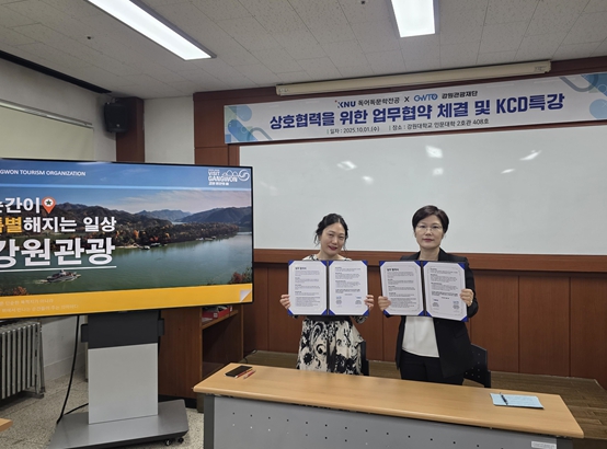 [뉴스앤톡] 강원관광재단 글로벌마케팅실은 10월 1일 강원대학교 독어독문학전공과 글로벌 관광 전문 인재 양성을 위한 업무협약(MOU)을 체결했다.