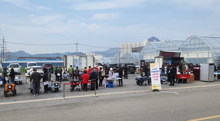시연된 장비는 ▲농산물 건조기 ▲전동운반차 ▲다용도 작업대 ▲이동식 충전식 분무기 ▲편의의자 ▲관절보호대 등으로, 농작업 효율성과 편의성 향상에 중점을 두고 구성됐다.