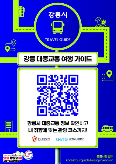 [뉴스앤톡] 한국관광공사와 강원관광재단은 11월 17일 , 강릉을 방문하는 도보 관광객을 위한 강릉시 대중교통 관광 가이드 플랫폼을 공식 출시했다고 밝혔다.
