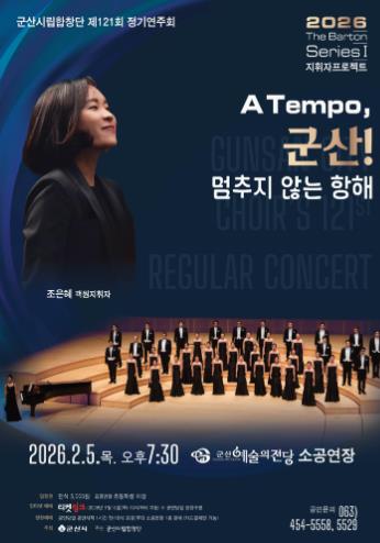 [뉴스앤톡] 군산시립합창단이 제121회 정기연주회 〈2026 The Barton Series Ⅰ 지휘자 프로젝트〉 A Tempo, 군산! '멈추지 않는 항해'를 오는 2월 5일 저녁 7시 30분, 군산예술의전당 소공연장에서 개최한다.