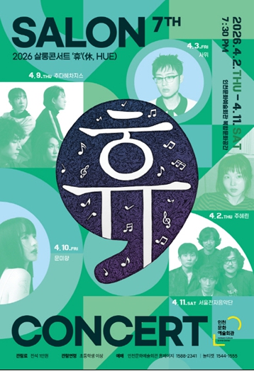 시 인천문화예술회관 관계자는 “살롱콘서트 ‘휴’는 독립음악 뮤지션들의 진솔한 창작 세계를 가까이에서 만날 수 있는 공연”이라며 “조용하지만 깊은 울림을 전하는 음악을 통해 관객들이 서로의 삶을 공감하고 위로받는 시간이 되길 바란다”고 말했다.