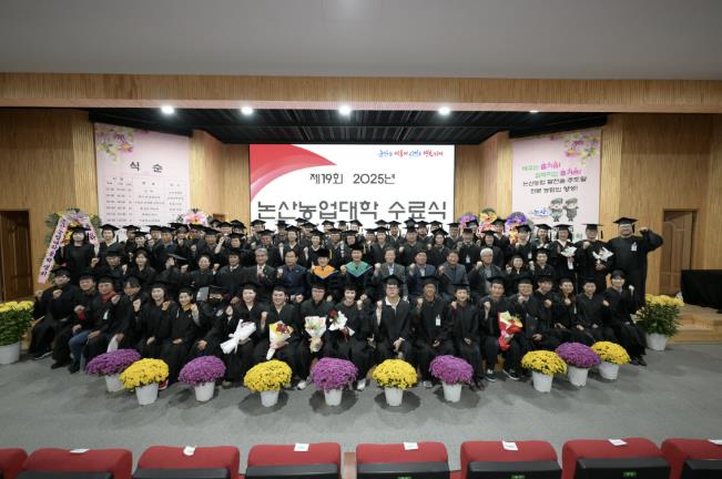수료식에서는 한 해 동안 교육을 마친 수료생들에게 수료증이 수여됐다. 이어 최재만 총학생회장과 임병국 부회장 등 농업대학 학생자치활동에 기여한 총학생회 임원들에게 농촌진흥청장, 충청남도지사, 논산농업대학총장 표창이 수여됐다. 또한 성실히 참여한 교육생들에게 성적우수상과 개근상이 전달되며 배움의 열정을 격려했다.