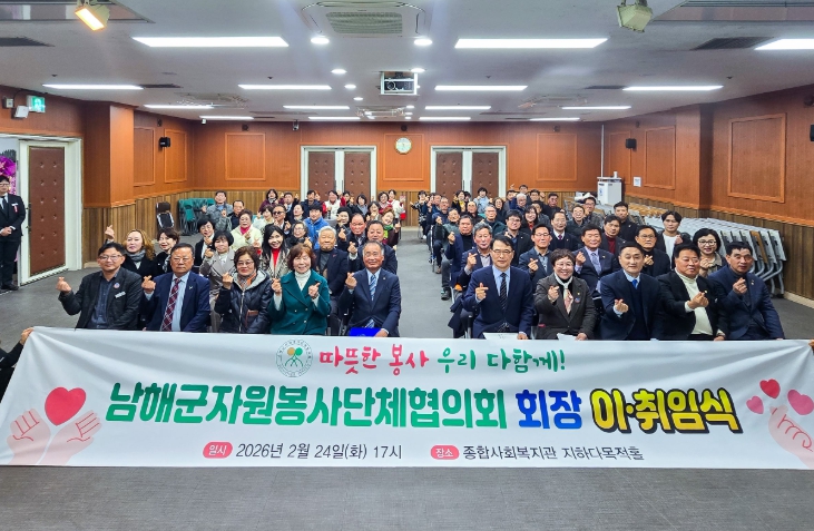 [뉴스앤톡] 남해군자원봉사단체협의회는 지난 24일 남해군종합사회복지관 다목적홀에서 2026년 정기총회 및 회장 이·취임식을 개최했다.