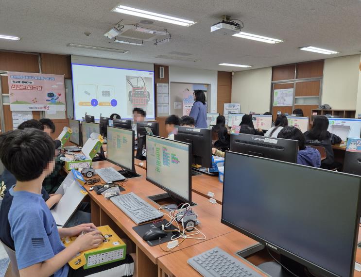 | ▲ 지난해 ‘찾아가는 공교육’ 중 ‘신나는 AI 교실’에 참여한 아이들 모습 |