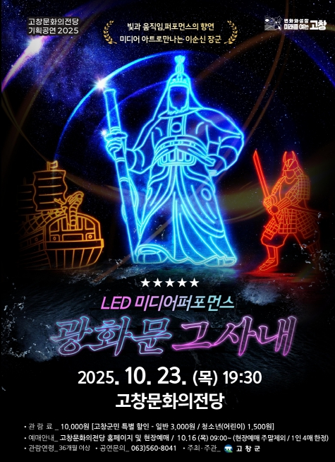 [뉴스앤톡] 고창군문화의전당이 오는 23일 저녁 7시30분 ‘LED 미디어 퍼포먼스-광화문, 그 사내’ 공연을 무대에 올린다.