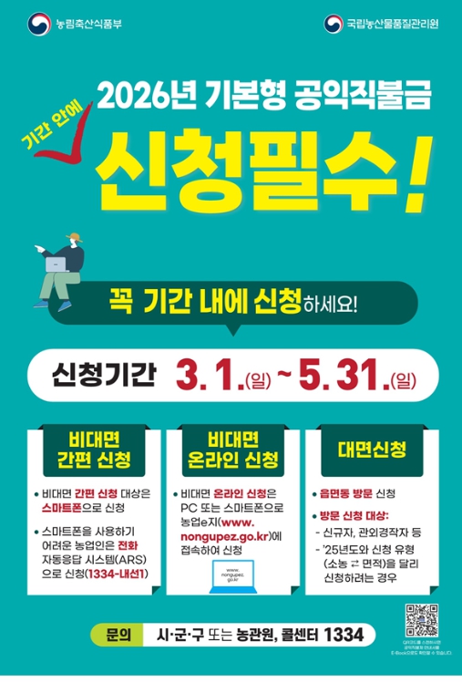 | ▲ 2026년 기본형 공익직불금 신청 접수 |
