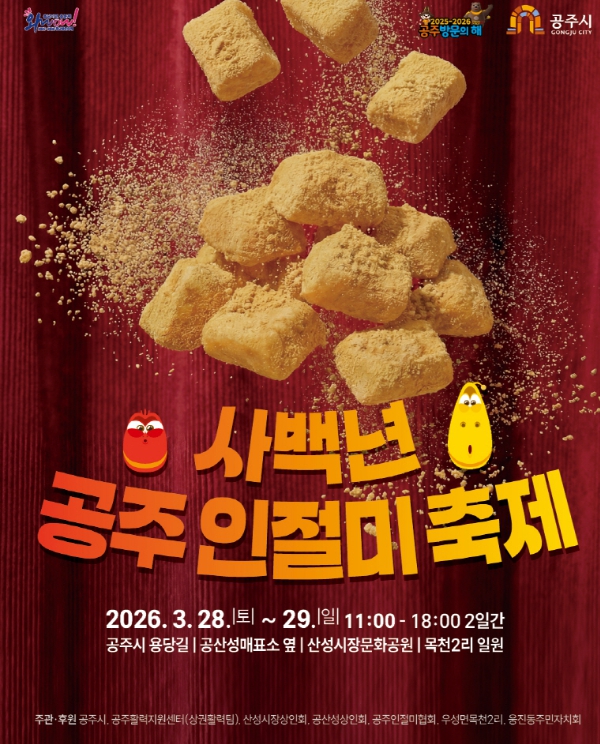 [뉴스앤톡] 공주시는 오는 3월 28일부터 29일까지 이틀간 산성시장과 공산성 일원 등 왕도심에서 ‘2026년 사백년 공주 인절미축제’를 개최한다고 18일 밝혔다.