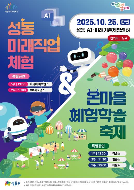 [뉴스앤톡] 서울 성동구가 오는 10월 25일 성동 AI‧미래기술체험센터 일대에서 '성동 미래직업체험 · 온마을체험학습 축제'를 개최한다고 밝혔다.