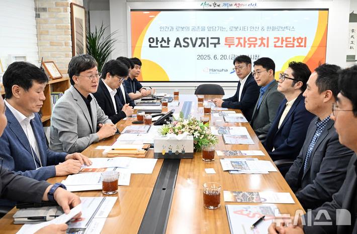 | ▲ 2025. 06. 20. 이민근 안산시장이 한화로보틱스 관계자와 투자유치 간담회를 진행하고 있다 |