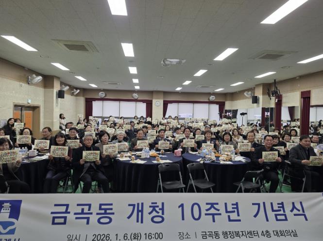 [뉴스앤톡] 2026년 개청 10주년을 맞은 권선구 금곡동은 지난 6일 지역구 의원과 주민 등 100여 명이 참석한 가운데 주민자치회 및 통장협의회와 함께 10주년 기념행사를 개최했다.
