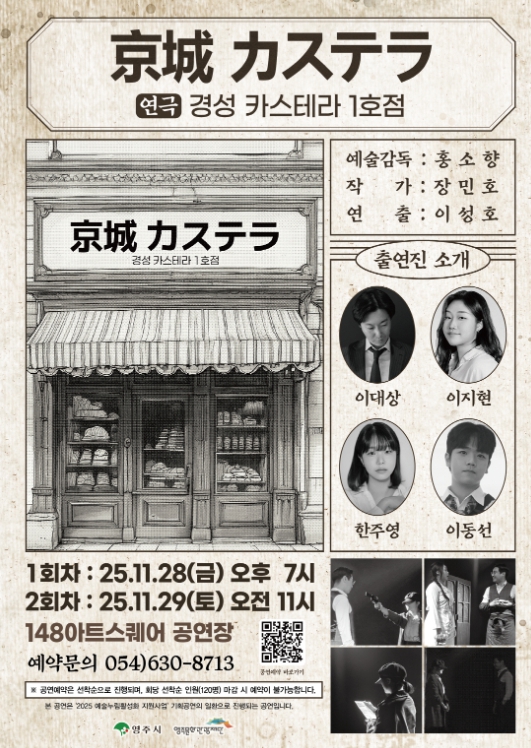 [뉴스앤톡] (재)영주문화관광재단은 오는 11월 28일 오후 7시와 11월 29일 오전 11시, 148아트스퀘어 공연장에서 광복 80주년을 기념한 창작연극 '경성 카스테라 1호점'을 선보인다.