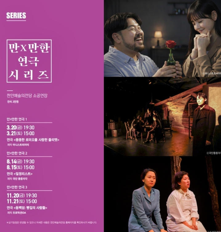 [뉴스앤톡] 천안문화재단이 오는 10일부터 천안예술의전당 기획공연 ‘만X만한 연극 시리즈’의 티켓 예매를 시작한다.